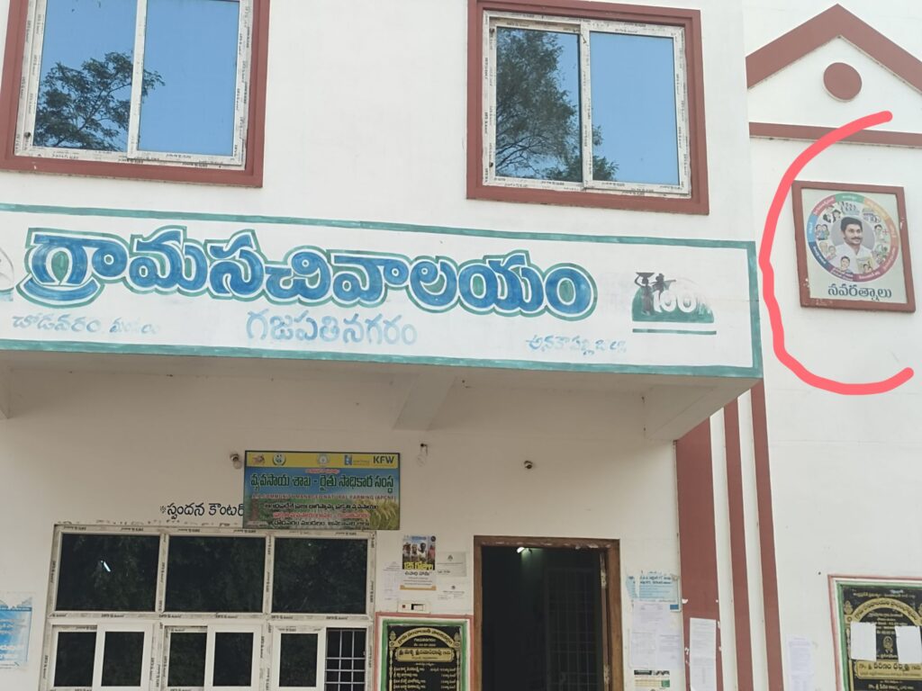 ఇందుకు చోడవరం మండలంలోని గజపతినగరం గ్రామ సచివాలయంలో ఏర్పాటు చేసిన మాజీ ముఖ్యమంత్రి జగన్ మోహన్ రెడ్డి ఫోటోలే నిదర్శనం.