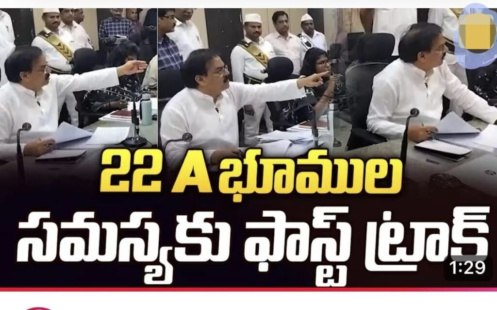 ఏలూరు జిల్లా కలెక్టర్ కార్యాలయంలో జరిగిన పబ్లిక్ గ్రీవెన్స్ లో 22a జాబితా గురించి సమీక్షించిన మంత్రి నాదెండ్ల మనోహర్ (ఫైల్ ఫొటో)